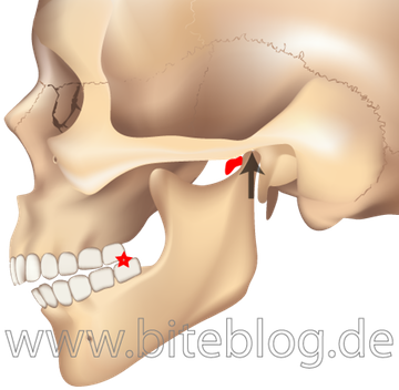 Bei der Kieferorthopädie mit Extraktion der Prämolaren muss man meist das gesamte Frontzahnsegment zurückbewegen, um die Extraktionslücken zu schließen, z. B. mithilfe eines sogenannten „Headgears“. Nicht nur, dass man so den Funktionsraum der Zunge einengt, dabei kann die Stellung der Schneidezähne so steil werden, dass der Unterkiefer seine liebe Mühe damit hat, Vorkontakten darauf aus dem Weg zu gehen. Er muss womöglich sein gesamtes Bewegungsmuster nach retral verlagern und belastet dabei die Kiefergelenke in einer Richtung, in der sie nicht sehr stabil sind: Es kann zum Diskusvorfall kommen. Geschieht dies, so kann sich die Kondyle des betroffenen Kiefergelenks höher in die Gelenkgrube stellen, als es bei eingelagertem Diskus möglich ist. Und dabei kommen sich die hinteren Backenzähne oben und unten näher. Sollte man sie jetzt einschleifen? Keinesfalls! So würde man verhindern, dass jemals wieder genug Gelenkspalt für eine gesunde Diskusfunktion entstehen kann!